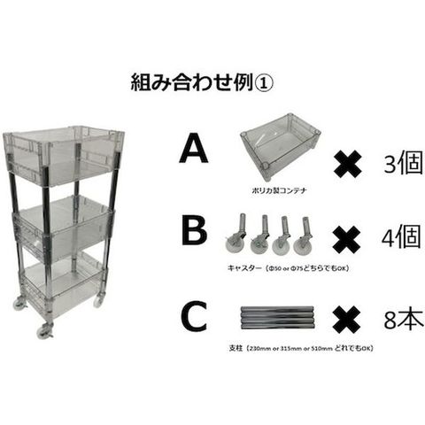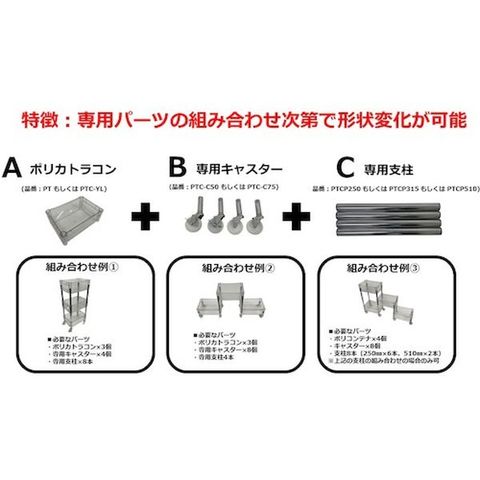 ・トランスフォームコンテナ専用のキャスターです。・1袋に固定キャスターと自在キャスターが2個ずつ入っています。