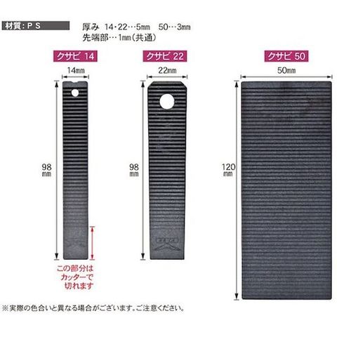 ・縦(mm):98・横(mm):14・最大厚(mm):5・最薄厚み(mm):1・品名:調整クサビ14