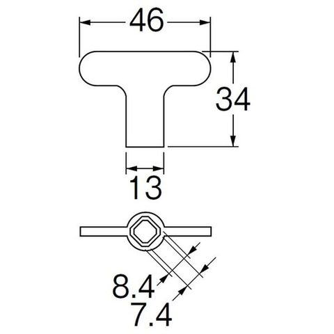 ・幅(mm):46・高さ(mm):34・穴径(mm):7.4、8.4