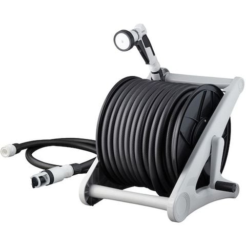 ・ホース全長(m):50・適合ホース内径(mm):15・適合ホース外径(mm):20・使用圧力(MPa):0.7・幅(mm):390・奥行(mm):421・高さ(mm):410・本体色:ホワイト・ホース色:チャコールグレー・タイプ:オープン・蛇口側ホース長さ(m):1.2・適合ホース内径×外径(mm):15~18×26まで・巻取り長さ(m):50