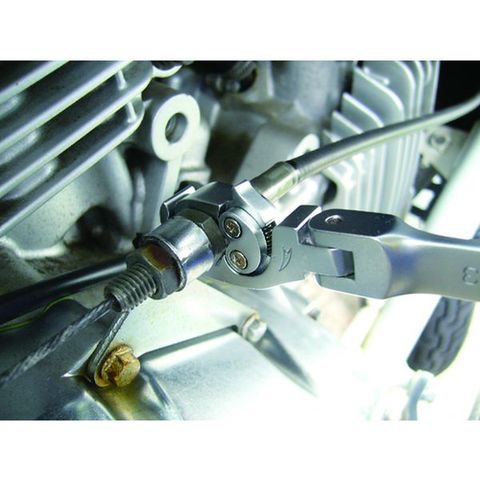 ・広げてくわえ、ラチェット機構で作業がスピーディーです。・スパナとのコンビネーションです。