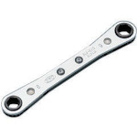 ・強力な板バネにより”カチッ””カチッ”と小気味よい連続音を発し、ラチェット作業ができます。・頭部は薄型、めがね形状で狭い所の作業に適しています。・送り角度は20°です。