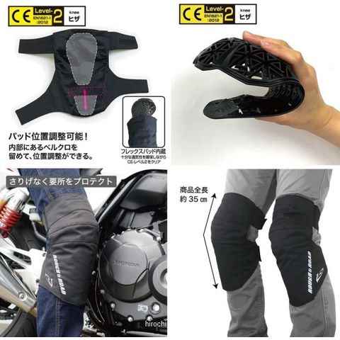 本体外側にはスポンジパッドを内包させ、更に脱着可能なCE2パッドを別途挿入することでアクシデントに備えた高いプロテクション性を誇ります。 また、脛外側には高輝度反射プリントを施し危険な夜間、高い視認性でライダーの存在をアピール。「膝は運動の要」あなたの膝を「さり気なく」、しかし、「しっかり」とプロテクションします。