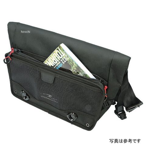 右掛け左掛け両用を考量したシンメトリー設計でユーザーを選ばず、メッシュポケットと大型ファスナーポケット(非防水)を備えた補強板入りフロントパネルをサイドのテンションベルトで調整することで、シルエットを崩すことなく荷物の増減に対応しバッグの安定感を高めます。