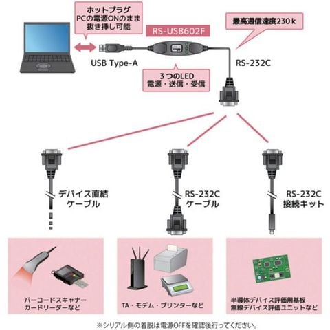 ・USBポートにRS-232C機器を接続します。・シーケンサーなど計測制御機器にも対応しています。・設定不要の簡単セットアップ、COMポートとして認識します。・COMポート用アプリケーションが使用可能です。・通信状態がよくわかる通信モニターLEDを搭載しています。・WindowsおよびWindows Server、Android OSに対応しています。・有害10物質不使用です。・持ち運びにも便利な軽量・スマートデザインです。