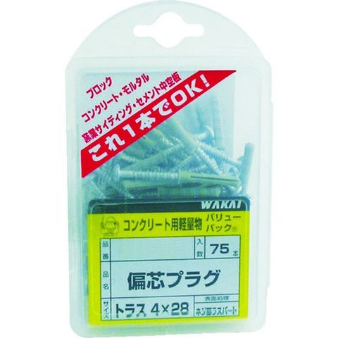 ・ねじとプラグが相手材に密着することで強力な締結感が得られます。・中空部・非中空部のどちらの材料にも使用できます。・モルタルやブロックにも使用できます。・ねじとプラグの合体効果で強い締結感があります。
