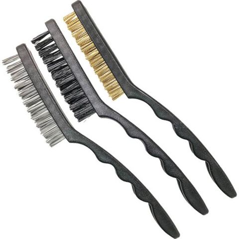 ・スチール・真鍮・ABスチールの異なる素材をブラシに使用した、レギュラーサイズのワイヤーブラシ3pcsセットです。・大きな角度付ハンドルで力を入れやすく作業楽々でき、錆取り・ペンキはがし等に大変便利です。・真鍮やスチール、錆びにくい新素材のABスチールの3本セットで、様々な用途に対応しています。