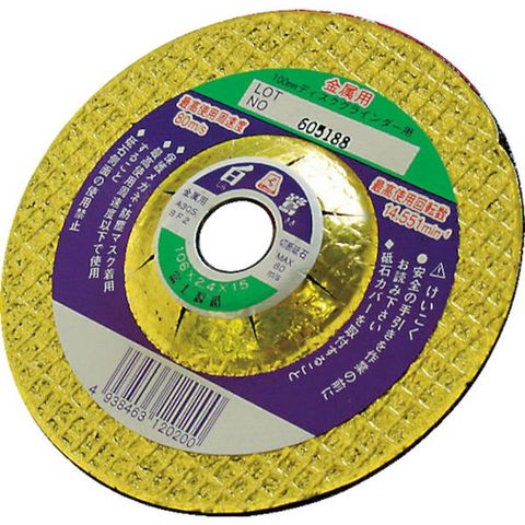 ・砥材:A・粒度(#):30・硬度:S・外径(mm):106・刃厚(mm):2.4・穴径(mm):15.0・最高使用回転数(rpm):14400