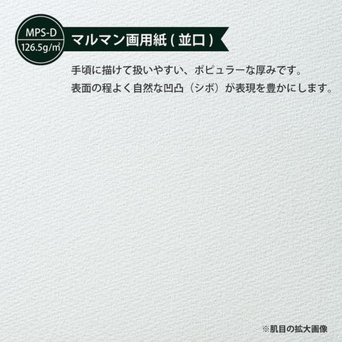 ・表面の程よく自然な凹凸(シボ)が表現を豊かにします。・ソフトで吸収性にも優れており、水彩にも適します。・発色がよく、修正や加筆を施しても傷みにくい強度を備えています。