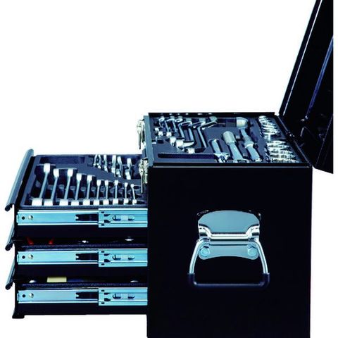 ・引き出しはボールベアリングスライダーを採用し、開閉がスムーズです。・カバーを閉じると引出しが自動ロック、飛び出し防止ロック機構付です。・重量が重くなったときには、サイドハンドルで持ち運びが便利です。・キーロック式で大切な工具も安心して保管できます。