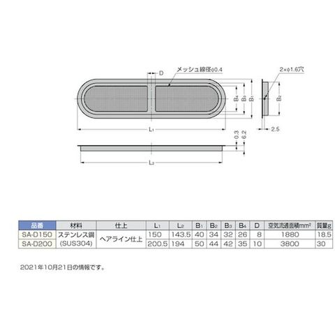 ・D(mm):8・L1(mm):150・L2(mm):143.5・B1(mm):40・B2(mm):34・B3(mm):32・B4(mm):26・空気流通面積([[MM2]]):約1880・L1:150・高さ(mm):40・長さ(mm):150・L2:143.5・厚さ(mm):6.2