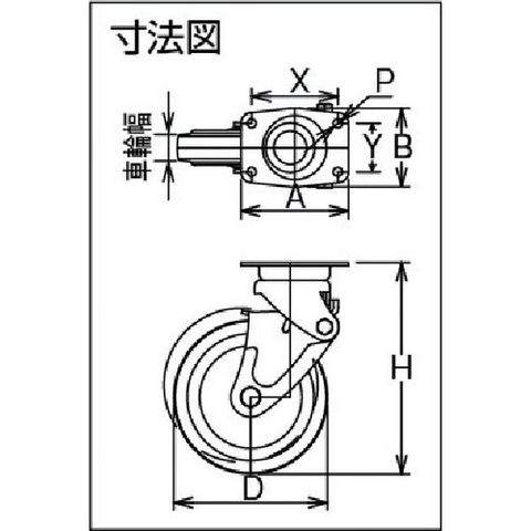 ・車輪径D(mm):200・タイプ:固定式・設定荷重(daN):196・設定荷重(kgf):200・車輪幅(mm):45・取付高H(mm):275~260・取付座A(mm):140・取付座B(mm):102・取付ピッチX(mm):112・取付ピッチY(mm):63・取付穴径P(mm):11.5