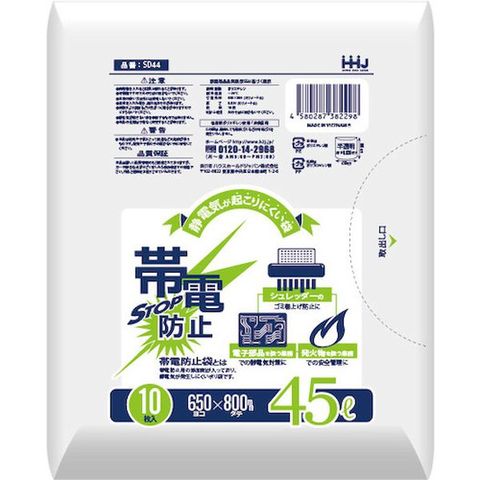 ハウスホールドジャパン(株) ハウスホールド 帯電防止袋45L 白 10枚 0.030