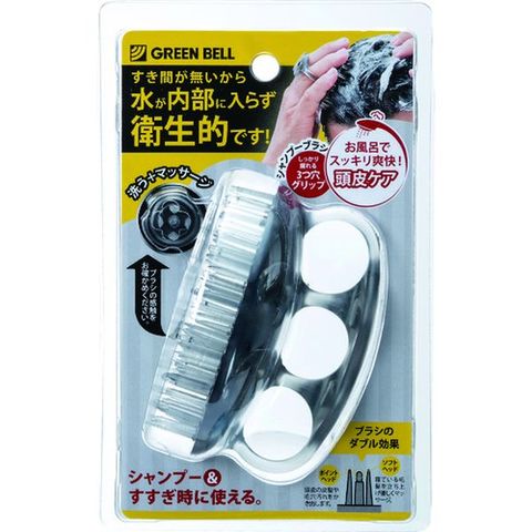 ・ブラシは指先では落ちにくい頭皮の皮脂や汚れを落とし、同時に頭皮マッサージの機能も備えています。・髪の毛が絡みにくく、きめ細かい泡が立ち、すすぎもしっかり行うことができます。・三つの指穴でホールド感抜群のグリップ。・シャンプー時でも手が滑りにくく、大きな操作やきめ細かい操作も自由自在。