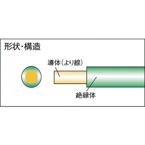 ・色:緑・芯数:1・全長(m):10・定格:125V-15A・外径寸法(mm):3.4・絶縁体厚さ(mm):0.8