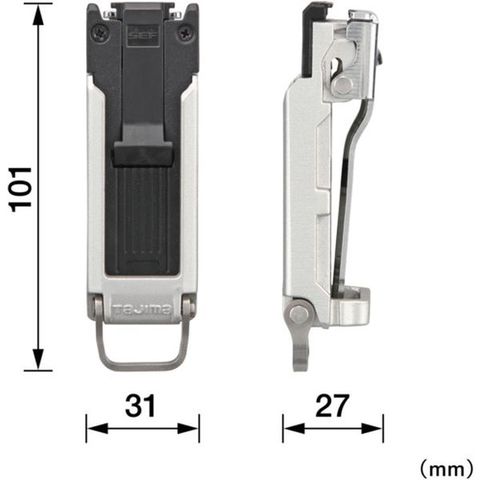 ・幅(mm):31・奥行(mm):27・高さ(mm):101・色:黒/銀・タイプ:スリム・適合ベルト幅(mm):50