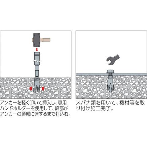 ・コンクリート面に均一施工ができるので美観に優れます。・貫通穴でも施工が可能(GTタイプ)です。・内部コーン打込み式で施工のバラツキが少ないです。・専用ハンドホルダーの使用により施工完了の確認ができます。