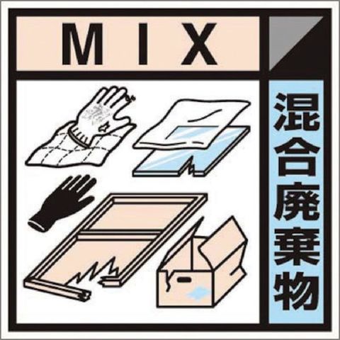 ・表示内容:混合廃棄物・取付仕様:粘着シール・縦(mm):100・横(mm):100