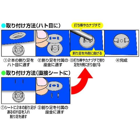 ・シートのハトメ部分に磁石を簡単に取り付け可能です。・シートへの直接の取付も可能です。