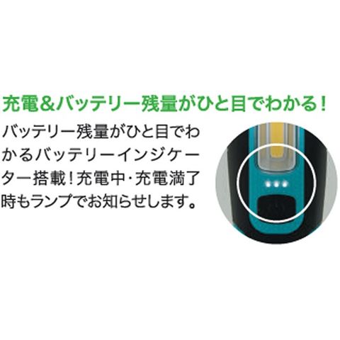 充電&バッテリー残量がひと目で分かるインジケーターLED付き。