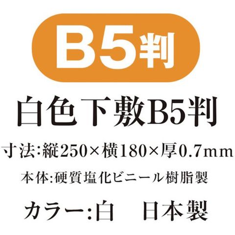 ・縦(mm):250・横(mm):180・厚さ(mm):0.7・規格:B5・色:白