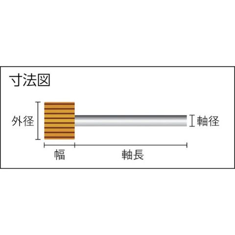 ・粒度(#):120・外径(mm):10・幅(mm):5・軸径(mm):3・軸長(mm):30・羽根枚数(枚):約25・最高使用回転数(rpm):25000