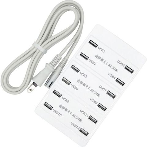 ・色:ホワイト・ポート数:12(USB)・幅(mm):152・奥行(mm):86・高さ(mm):33.5・ケーブル長(m):1.5