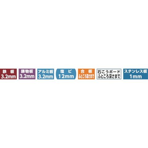 ・被削材:鉄、アルミ、鋳物、合板、石こう、塩ビ、塩ビ管など、鋼管、ステンレス(1.0mm)など。