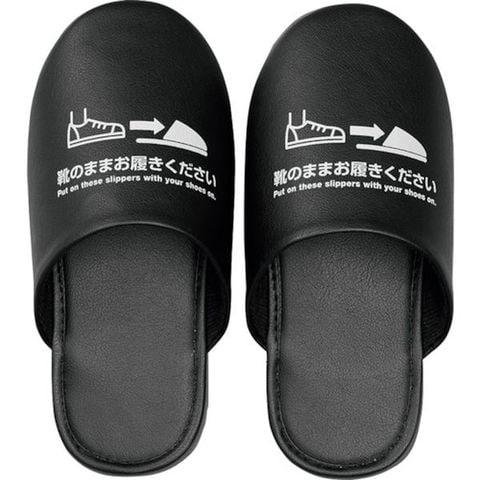 ・靴を履いたまま使用できるよう大きめに設計されているスリッパです。・靴底を通じて広がる恐れのある「床の汚れ」や「菌」を持ち込まないようにする為にご使用頂けます。・安全靴や登山靴、ギプスなど、着脱が困難な場面での使用も便利です。・表地には抗菌仕様のPVCを使用している為、衛生的にご使用頂けます。・「JIS L1902:2015」に準拠した試験で「黄色ブドウ球菌」の増殖を抑える効果が確認された素材(PVC)を使用しています。・底面にはゴム付EVA素材を使用し、滑りにくい構造です。・お手洗いの床など、水気がありつるつる滑りやすい場合でも、転倒のリスクを軽減します。・スリッパの甲がつぶれにくく、ラウンド形状を保ちやすくなっているので履きやすいです。・イラスト・日本語・英語で使い方の案内を印刷済みです。・S、M、Lの選べる3サイズご用意がございます。