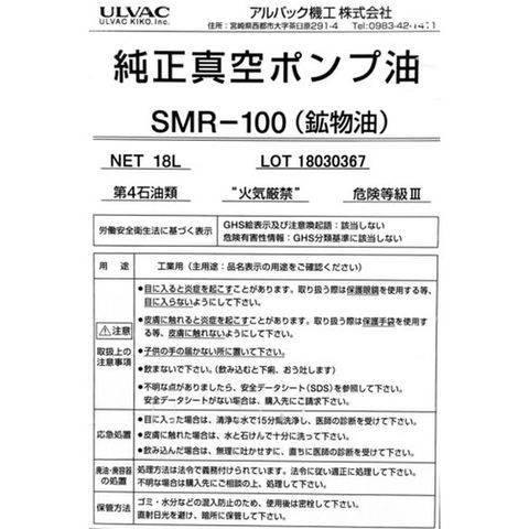 SMR1004L (株)アルバック ULVAC 真空ポンプ油(SMR-100 4L缶)
