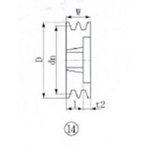 ・データム径(mm):155・溝数:2・適合ブッシング:2012・図面番号:14・幅(mm):44・適合ベルト:B、BX、5V、5VX、SPB・適用ベルト:B、BX、5V、5VX、SPB