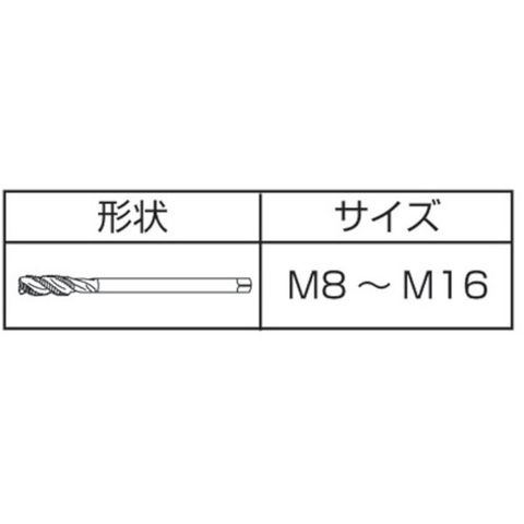 ・加工ねじ:メートルねじ・止り穴用。・被削材:一般鋼、低中炭素鋼、合金鋼、ステンレス鋼。