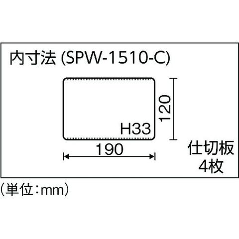 ・色:クリア・外形寸法(mm)間口:200・外形寸法(mm)奥行:153・外形寸法(mm)高さ:40・有効内寸(mm)間口:190・有効内寸(mm)奥行:120・有効内寸(mm)高さ:33・仕切板(枚):4・タイプ:可動仕切