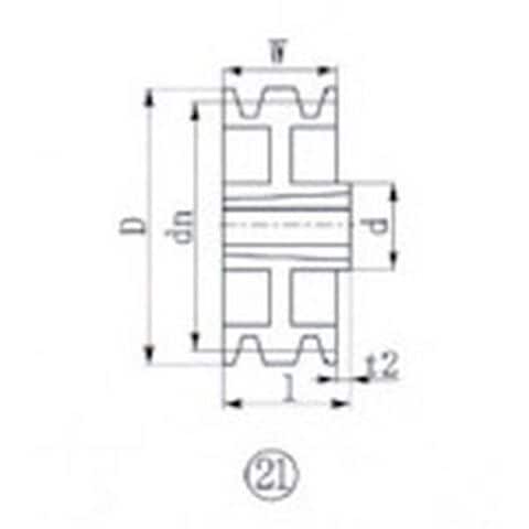 ・データム径(mm):265・溝数:3・適合ブッシング:2517・図面番号:21・適合ベルト:3V、M、SPZ