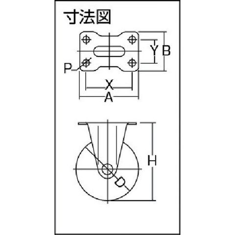 ・車輪径D(mm):50・タイプ:固定式・許容荷重(daN):60・許容荷重(kgf):61.2・車輪幅(mm):25・取付高H(mm):70・取付座A(mm):70・取付座B(mm):47・取付ピッチX(mm):55・取付ピッチY(mm):28・取付穴径P(mm):8.8・許容荷重(N):600