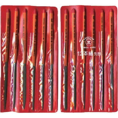 ・セット内容 12本組サイズ 平、半丸、丸、角、三角、シノギ、先細、楕円、刀刃、腹丸、ハマグリ、両甲 12形状 各1本入り・粒度:01(荒目)、02(中目)、03(細目)