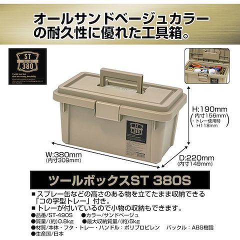 ・オールサンドベージュカラーの耐久性に優れた工具箱です。・スプレー缶などの高さのある物を立てたまま収納できる「コの字型トレー」付きです。・トレーが付いているので小物の収納もできます。