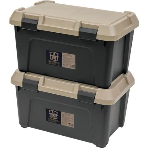 ・「サンドベージュ×ブラック」の耐久性に優れた収納ボックスです。・DIY用品、工具、アウトドア、カー用品の収納に最適です。・耐荷重は80kgf(蓋)なので、踏み台や椅子としても使用できます。・バックルはABS樹脂使用なので、破損しにくく丈夫です。