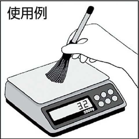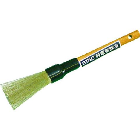 ・全長(mm):130・毛丈(mm):40・毛幅(mm):10・ブラシ長(mm):12φ・線径(mm):0.07・表面抵抗値(Ω):10[[の2乗]](Ω/□)・タイプ:ハケ型木柄・毛材:有機導電性ゴールド繊維