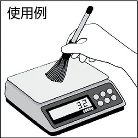 ・全長(mm):135・毛丈(mm):40・毛幅(mm):10・ブラシ長(mm):12φ・線径(mm):0.07・表面抵抗値(Ω):10[[の2乗]](Ω/□)・タイプ:ハケ型・毛材:有機導電性ゴールド繊維