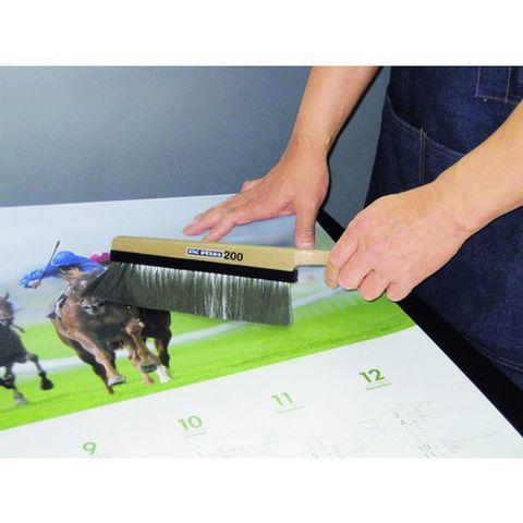 ・全長(mm):350・毛丈(mm):50・毛幅(mm):10・ブラシ長(mm):200・線径(mm):0.07・表面抵抗値(Ω):10[[の2乗]](Ω/□)・タイプ:ハンド木柄・毛材:有機導電性ゴールド繊維