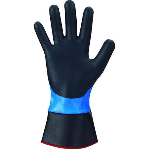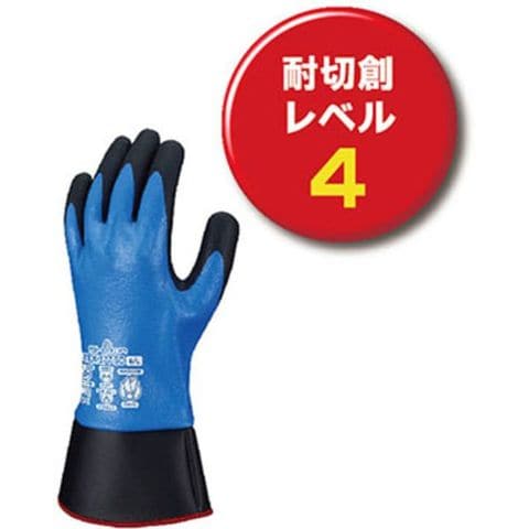 ・色:ブルー・サイズ:L・全長(cm):30.0・手のひら周り(cm):22.0・中指長さ(cm):8.0・EN388 2016規格:4X41D・リストカラー:レッド・すべり止め:あり・耐摩耗性:3・耐引裂性:4・耐突刺性:1・耐切創レベル:X/D
