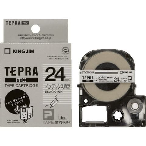 JIM 【純正】「テプラ」PROテープ 24mm 透明ラベル/黒文字 インデックスラベル 長さ8m