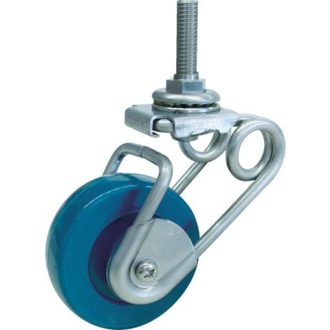 ・車輪径D(mm):75・タイプ:自在式(ミリねじタイプ)・設定荷重(daN):49・設定荷重(kgf):50・車輪幅(mm):25・取付高H(mm):114~102・軸長L(mm):35・ねじT:M12・ねじピッチ(mm):1.75・緩衝荷重(kg):~50・最大許容荷重(kg):~50