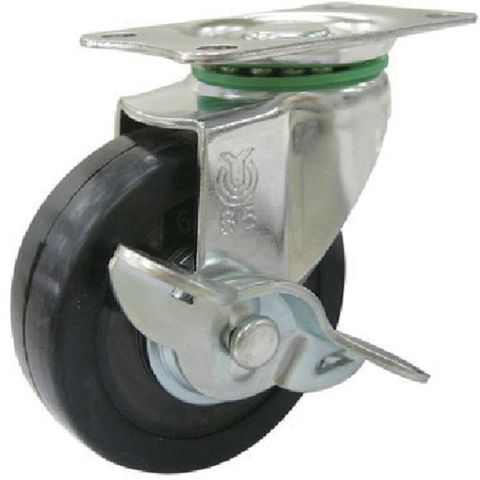 プレート式 自在 ステンレスキャスター ゴム 車輪径50mm ストッパー付き SUS-E-S型 取付寸法56×28
