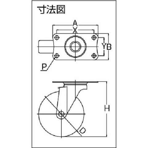 ・車輪径D(mm):65・タイプ:自在式・許容荷重(daN):40・許容荷重(kgf):40.8・車輪幅(mm):21・取付高H(mm):82・取付座A(mm):70・取付座B(mm):42・取付ピッチX(mm):56・取付ピッチY(mm):28・取付穴径P(mm):6.5・許容荷重(N):400