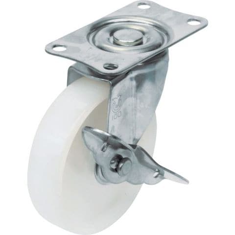 プレート式 自在 ステンレスキャスター ナイロン 車輪径65mm ストッパー付き SUS-E-S型 取付寸法56×28