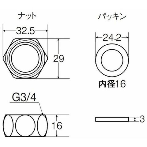 ・高さ(mm):16・幅(mm):32.5・奥行(mm):29・ねじ寸法:G3/4・呼び径:20