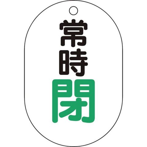 ・表示内容:常時閉・白地(緑文字)・縦(mm):70・横(mm):47・厚さ(mm):2.5・摘要:両面表示・材質:アクリル・形状:小判型