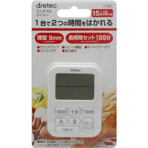 T548WT (株)ドリテック dretec ミニダブルタイマー ホワイト